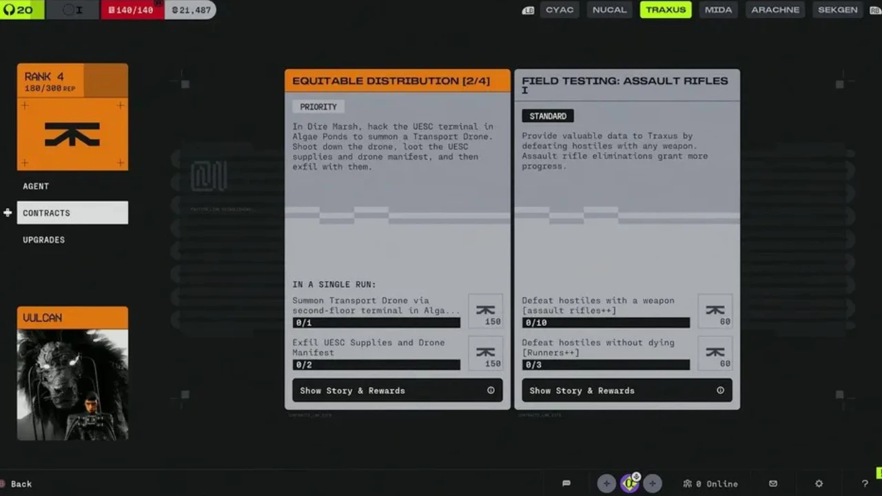 Faction XP carries over even when you die without extracting. Contracts give you progression regardless of run outcome. Prioritising contract objectives early is how you unlock better faction upgrades faster — which directly improves your available loadouts and passive bonuses for future runs.