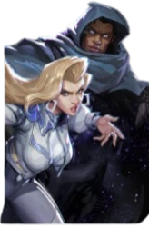 Emma Frost — Can switch between her regular and Diamond Form to adapt. Good mid-range poke with a deployable barrier, excels in melee brawls at close range. Her main limitation is a lack of mobility — she can't chase retreating enemies or access high ground.