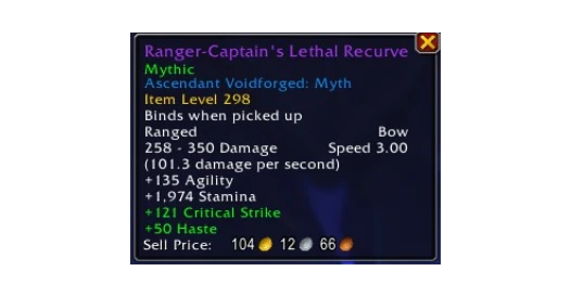 Only fully upgraded Hero, Myth and maximum quality Radiance Crafted weapons and trinkets are eligible to become Ascendant Voidforged.