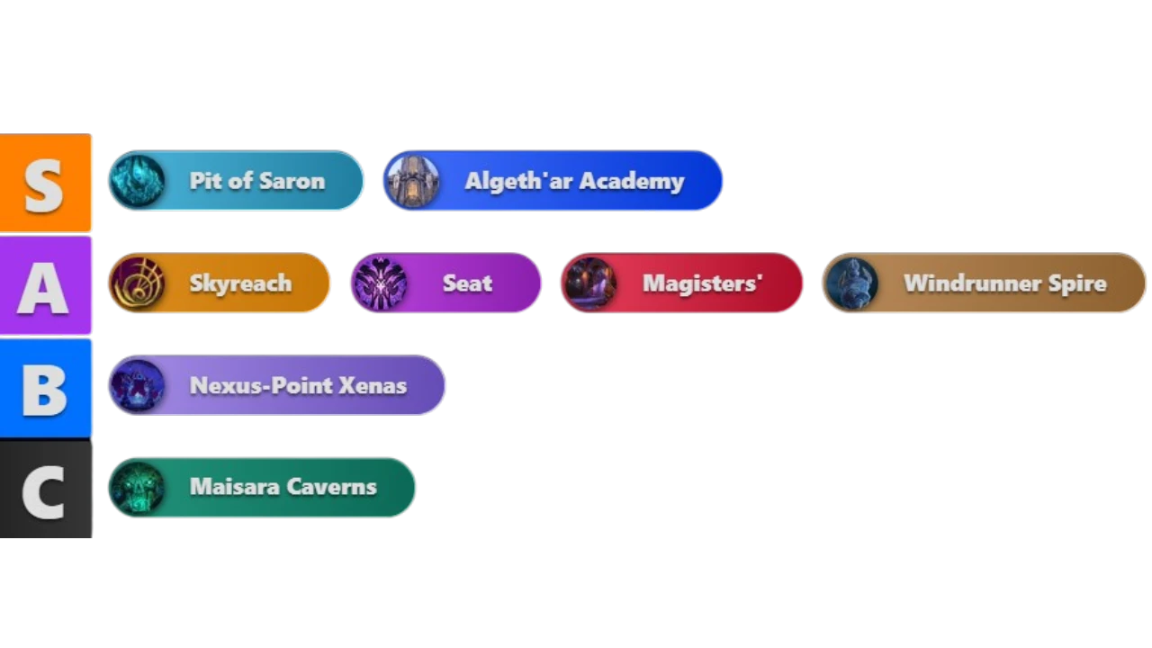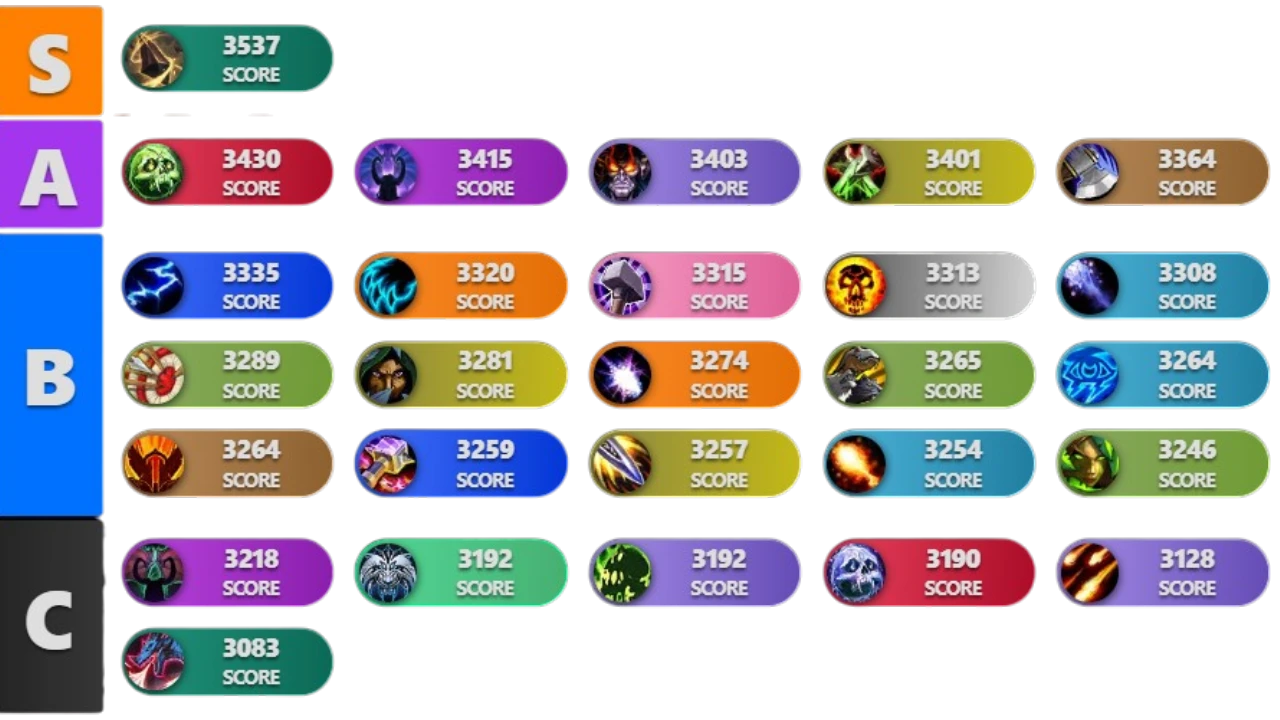 Key changes from the previous tier list: Fire Mage climbed into A-tier after 12.0.5 tuning, Shadow Priest received meaningful buffs and stabilized in A-tier, Assassination Rogue appeared in A-tier for the first time. The expanded +7 to +20 range makes the separation between tiers sharper than ever: survivability matters as much as DPS at the top end. Every death on a high key costs 15–30 seconds of timer plus a raise — specs with stronger self-sustain move up in real value beyond what raw numbers alone suggest.